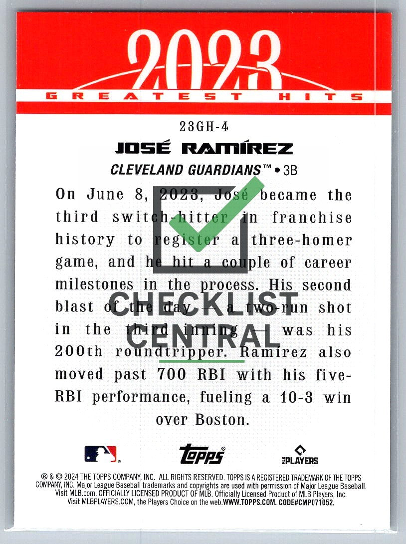 2024 Topps '23 Greatest Hits José Ramírez #23GH4.