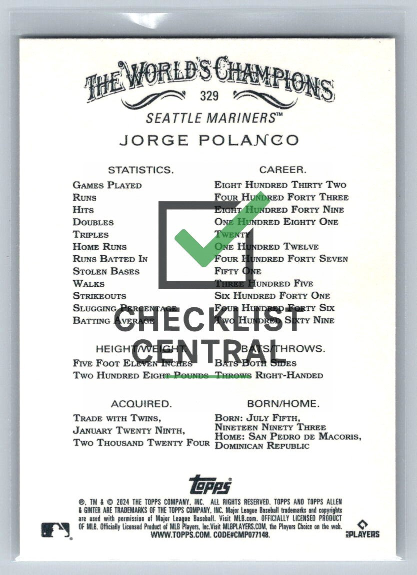 2024 Topps Allen & Ginter Jorge Polanco #329 SP.