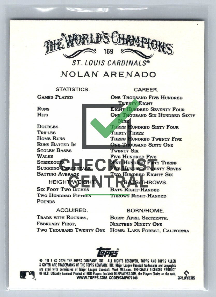 2024 Topps Allen & Ginter Nolan Arenado #169.