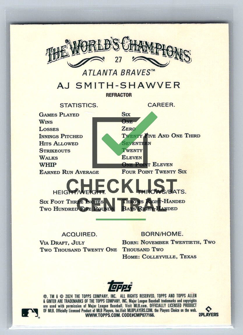 2024 Topps Allen & Ginter Refractor A.J. Smith-Shawver #27