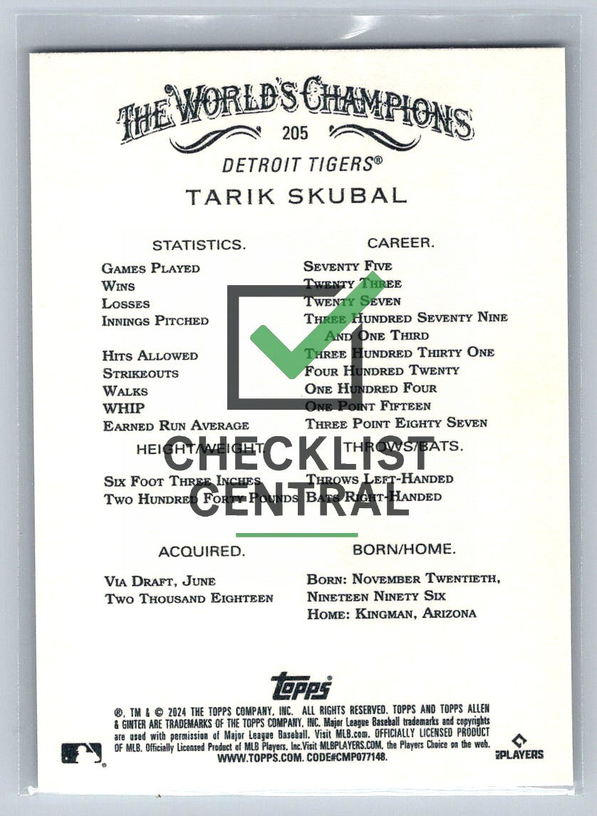 2024 Topps Allen & Ginter Tarik Skubal #205.