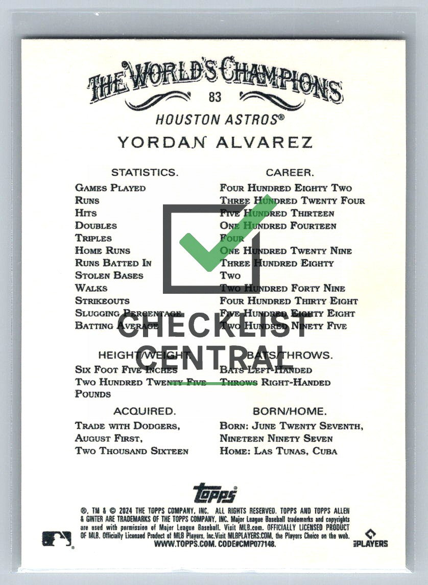 2024 Topps Allen & Ginter Yordan Alvarez #83 (Copy)