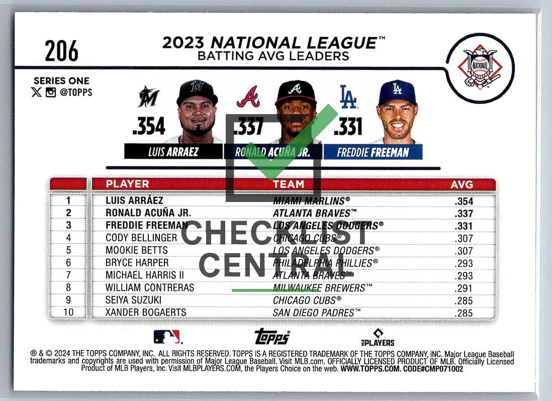 2024 Topps Ronald Acuna, Luis Arraez, & Freddie Freeman #206 - League Leaders