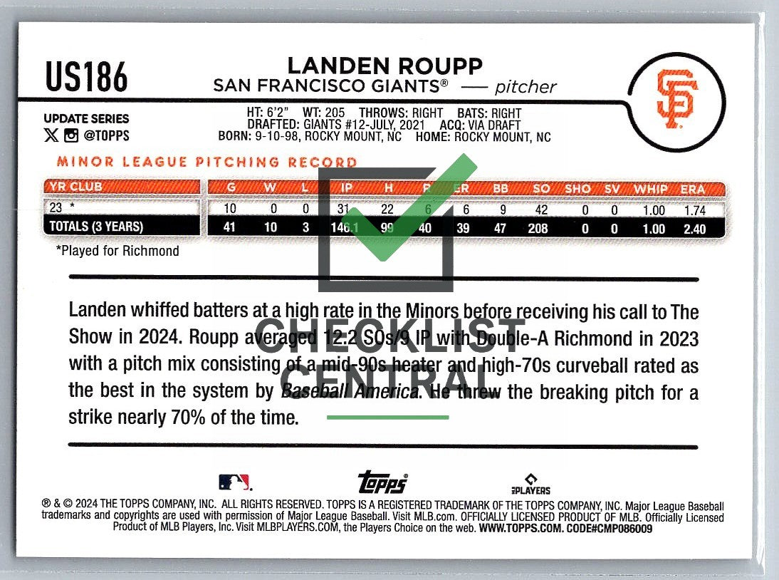 2024 Topps Update Gold Rainbow Foil Landen Roupp #US186.