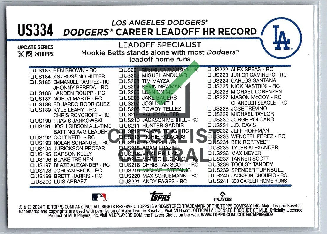 2024 Topps Update Mookie Betts #US334 - Dodgers Career Leadoff HR Record.