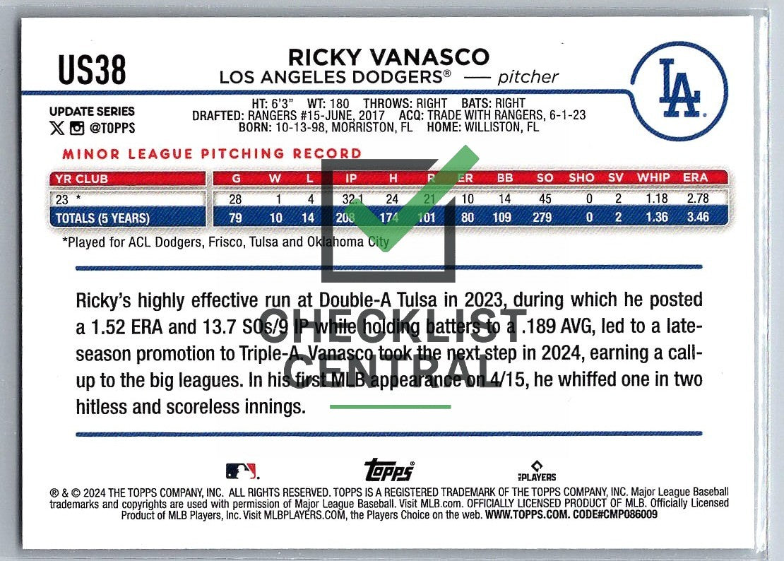 2024 Topps Update Ricky Vanasco #US38 RC.
