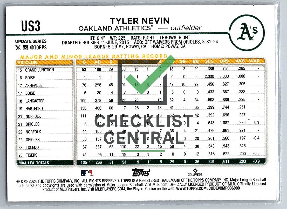 2024 Topps Update Tyler Nevin #US3.
