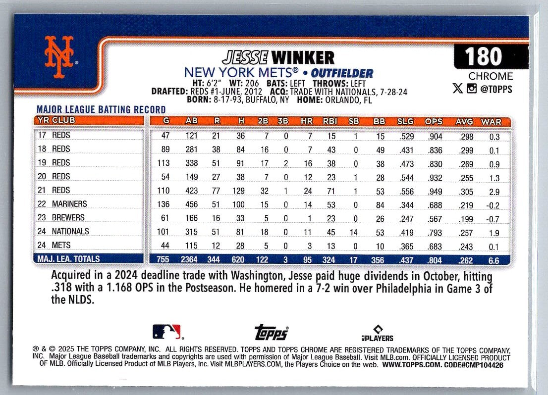 2025 Topps Chrome X-Fractors Jesse Winker #180