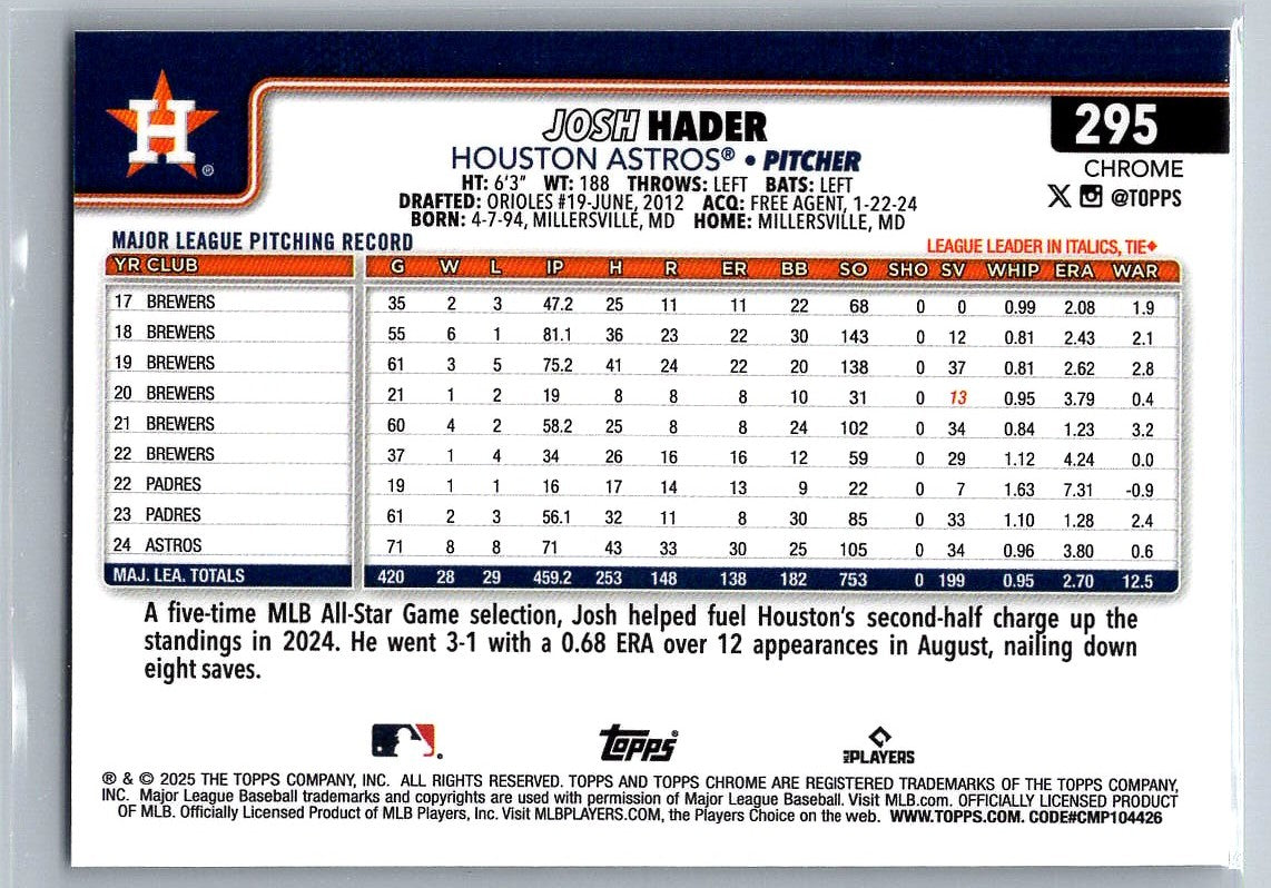 2025 Topps Chrome X-Fractors Josh Hader #295