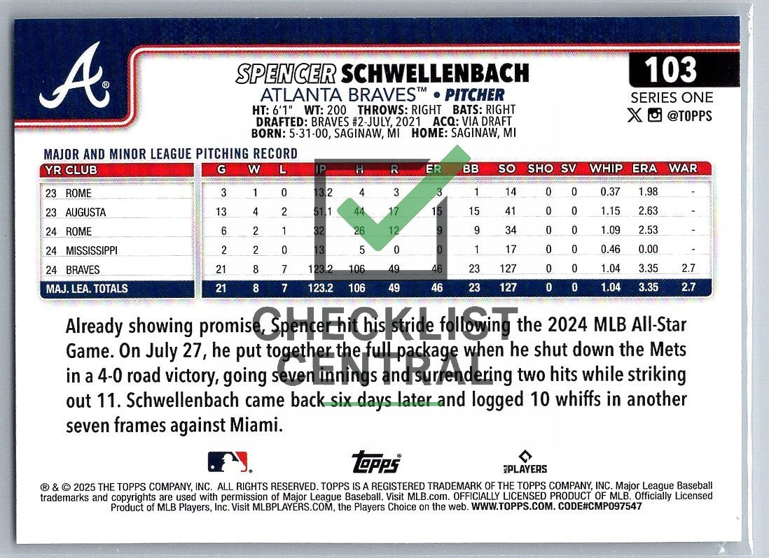 2025 Topps Spencer Schwellenbach #103 RC.
